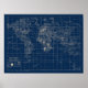 Affiche Carte du monde bleu marine