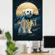 Design d'affiche de style rétro frappant d'une Bichon Frise avec un arrière - plan de montagnes et grand graphisme solaire le tout dans une palette de couleurs saisissante d'or à travers le bleu prussien. Une grande police décorative nomme la race de chien. Recherchez ID754 pour voir d'autres options de couleur et d'autres races de chiens dans ce style.