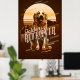 Design d'affiche de style rétro frappant d'un Golden Retriever avec un arrière - plan de montagnes et grand soleil graphique le tout dans des tons monochromes d'or à travers le marron. Une grande police décorative nomme la race de chien. Recherchez ID754 pour voir d'autres options de couleur et d'autres races de chiens dans ce style.