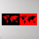 La carte du monde divisée en deux parties, l'une noire et l'autre rouge