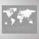 Carte du monde romantique personnalisée pour les couples avec la vie est un Voyage Meilleur Voyage Ensemble citations de voyage et espace pour les noms et mariage spécial ou date anniversaire. Les pays du monde entier sont étiquetés, ainsi que les États des États-Unis, les provinces du Canada et les États de l'Australie. Ils font de grands cadeaux de mariage et d'anniversaire, ainsi que des cadeaux de Noël et d'anniversaire sentimentaux pour lui ou pour elle. Commandez en tant qu'impression de toile étirée pour faire une carte de voyage en broche et afficher en tant que "lieux que nous avons été" ou liste de souhaits pour l'endroit où vous voulez visiter. Montré en gris neutre. Autres titres et couleurs disponibles. Map Sappy est une division d'impressions Papier Plane.