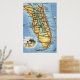 Une carte routière vintage et rétro de la Floride. elle est colorée et pleine des noms des villes et des villes à travers l'état. Il s'agissait d'une vieille carte postale en lin reproduite aujourd'hui dans une affiche. Nous pensons que la taille 24x36 est le meilleur format, mais vous pouvez le redimensionner si vous le souhaitez. Nous avons aussi l'image avec une bordure pour le meilleur encadrement disponible sur ce site.
