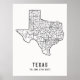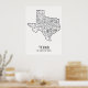 Affiche graphique et simple avec la carte de l'état du Texas avec ses routes principales.