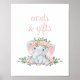 Affiche Cartes et cadeaux Baby shower Eléphant Rose Cute