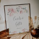 Cette pancarte cartes et cadeaux de fleurs de cerisier printanières est parfaite pour un mariage moderne ou une fête de mariage. Le motif floral oriental présente une branche d'arbre en fleurs de cerisier rose clair aquarelle fantaisiste et des feuilles vertes dans un style japonais élégant. La ligne de texte au bas de la pancarte peut être personnalisée avec la date, les noms des mariés, ou un court message comme "Merci". Cette pancarte peut être utilisée pour un mariage ou tout autre événement ou fête.