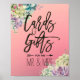 Table de cadeaux de mariage / Cartes et cadeaux Modèles de pancarte de décoration de mariage - Élégantes et charmantes plantes succulentes aquarelle sur fond rose.
