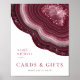Tous les designs mariages ne sont pas égaux. L'agencement asymétrique des pièces de cet ensemble mariage frappant prouve que ce n'est pas une mauvaise chose ! Des bandes de couleur ondulées, allant du bordeaux au rose doux et gris, avec un centre de cristal scintillant, forment un accent géode/agate sur la plupart des pièces de l'ensemble. Le panneau "Cartes et Cadeaux" mariage ci-dessus comprend un modèle pour ajouter un message personnel, vos noms et la date du mariage. Recherchez ID647 pour voir toutes les pièces de coordination de cet ensemble.