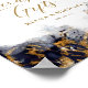 Un arrière - plan abstrait qui évoque le marbre dans les tons bleu marine veiné d'or brillant est la toile de fond de textes élégants et de mises en page design moderne dans les pièces de cette belle suite mariage. Le panneau mariage ci-dessus contient le texte du script courant facultatif ci-dessus de "Cartes et Cadeaux" et un modèle pour ajouter vos noms et votre date de mariage. Recherchez ID644 pour voir toutes les pièces de coordination de cet ensemble.