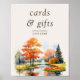 Panneau Fall Lake pour votre table de cartes et cadeaux à votre mariage ou à votre douche nuptiale. Pays rustique, aquarelle pittoresque avec scène au bord du lac avec parc boisé avec verdure et de beaux arbres avec feuillage d'automne. Facile à personnaliser avec votre sentiment et vos noms personnalisés. Si vous souhaitez modifier la couleur de bordure de l'arrière - plan, cliquez pour customiser avec l'outil de conception. Si vous souhaitez faire correspondre des produits, veuillez consulter ma collection Fall Lake.