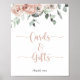 Cette affiche classique de cartes et de cadeaux floraux de rose couleur rose poudré est parfaite pour un mariage rustique ou une fête de douche de mariée. Le design présente des roses élégantes peintes à l'aquarelle de couleur rose poudré et un feuillage vert, soigneusement assemblés en de beaux bouquets.