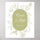 Cette enseigne de cartes de douches nuptiales et de cadeaux d'inspiration vintage présente un cadre floral d'art de ligne ovale vert avec des fleurs et des papillons élégants. Avec son cadre fleuri sophistiqué et son souci du détail, cette enseigne de cartes et cadeaux donnera le ton d'une douche nuptiale mémorable et élégante. Préparez-vous à célébrer avec la mariée alors qu'elle se prépare pour son grand jour !