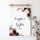 This autumn rustic burgundy cards and gifts sign is perfect for a modern wedding or bridal shower. The design features burgundy, red, navy, blue and blush radiant and graceful hand-painted flowers, inspiring natural beauty. Make the line of text at the bottom of the sign your own by including the date, the names of the bride and groom or a short message like "Thank you". This sign can compliment a wedding, any event or party.