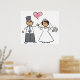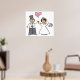 Affiche Cartoon Mariage Couple Mariée & Groom Coeur rose