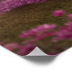 Poster avec l'image pittoresque d'un lac violet paisible. Entouré de cerisiers luxuriants et de cascades.
