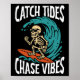 Affiche Catch Tides Chase Vibes Skeleton Surfer Beach