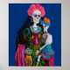Célébrez le Jour des Morts avec cette belle mère et enfant calavera Catrinas. Elle porte une robe huipil de la région du Chiapas avec une délicate couronne de roses roses.