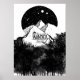 Illustration surréaliste des bois et montagnes noirs et blancs avec une citation calligraphique - "Tous ceux qui WANDER ne sont pas perdus"