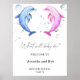 Garçon ou fille. Bleu ou rose. Aquarelle Les dauphins roses et bleus avec le genre révèlent la fête. Le genre révèle la fête est décoré avec une bulle d'eau aquarelle.