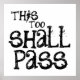 Une affiche en noir et blanc motivera et encouragera chaque jour. Le sentiment "cela aussi passera" est dans une typographie noire grincheuse sur un arrière - plan blanc immaculé.