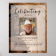 Laffiche de souvenir parfaite pour saluer la famille et les amis à leur arrivée à la célébration de la vie de votre proche. Le design présente une photo personnelle carrée, 5 lignes de texte personnalisé et une photo de fond de bottes et chapeau de cowboy. Vous pouvez facilement la remplacer par votre propre photo de fond. Classique mais unique - ce modèle est si facile à personnaliser et fera un beau souvenir commémoratif également.