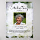 Le poster mémorial parfait pour accueillir la famille et les amis à la célébration de la vie de votre proche. Surtout pour quelqu'un qui aime les fleurs et peut-être le jardinage - le design présente une photo personnelle carrée, 5 lignes de texte personnalisé et une photo de fond de belles hortensias blancs. Vous pouvez facilement la remplacer par votre propre photo de fond. Classique mais unique - ce modèle est si facile à personnaliser et fera un merveilleux souvenir mémorial.