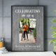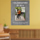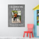 Célébrer la vie. Le panneau funéraire photo est conçu par szdesign. Le design est composé d'un fond boisé gris et d'une grande typographie blanche qui crée un contraste décent.