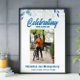 Cette affiche de funérailles photo célébrant la vie est créée par szdesign. Le design est composé d'une goutte florale bleue et d'une grande typographie bleue qui crée un contraste décent.