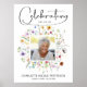 L'affiche funéraire commémorative moderne présente le texte 'Célébrons la vie de', la photo de votre proche sur un fond de fleurs sauvages, leur nom et leurs dates de naissance et de décès. TÉLÉCHARGEMENT INSTANTANÉ ou commande IMPRIMÉE. Articles CORRESPONDANTS dans notre collection.