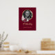 Elégant panneau d'accueil personnalisé aux funérailles florales rouge bordeaux, rose et or avec cadre photo doré orné de fleurs rouges bordeaux et roses rousses. Pour des demandes personnalisées, envoyez-nous un message via Zazzle conversation.