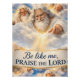 Une atmosphère de joie divine et d'inspiration dans votre maison avec cette superbe affiche céleste. L'œuvre d'art présente de multiples figures célestes souriantes avec des cheveux blancs et des barbes qui rayonnent de chaleur et de sagesse à partir de nuages doux et lumineux. Une bannière proéminente au centre porte le message puissant : soyez comme moi louange au Seigneur, servant de rappel quotidien joyeux de foi et de gratitude.