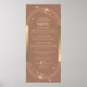 Céleste Mocha Mousse Gold Sun Moon Stars 30th Birthday Menu Cards propose un soleil doré, une lune et des étoiles sur un arrière - plan de mousse mocha avec vos détails de menu dans le centre de l'écriture de calligraphie or moderne. Personnalisez en modifiant le texte dans les zones de texte fournies. Conçu pour vous par Evco Studio www.zazzle.com/store/evcostudio
