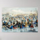 "Central Park, Winter - The Skating Pond" saisit magnifiquement l'atmosphère animée et festive de l'hiver à Central Park. Le tableau représente une patinoire animée, remplie de gens qui manifestent diverses poses de patinage, tandis que des couples ou des amoureux se tiennent la main en glissant à travers la glace. Les chiens joueurs ajoutent à la joie de la scène. Au loin, un grand pont surplombe le paysage, avec des arbres enneigés et de charmants bâtiments anciens qui rehaussent la nostalgie de l'hiver. Toute la composition évoque un sentiment de chaleur, de joie et de beauté intemporelle, qui incarne l'esprit d'une journée d'hiver classique.