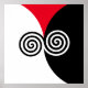 L'art abstrait avec des formes géométriques de cercle en spirale sur fond noir rouge et blanc. Les spirales symbolisent l'énergie cosmique sacrée présente dans tout. La double spirale représente l'équilibre et la créativité. Et c'est au cœur de la vie comme l'ADN composé d'une double hélice !