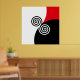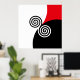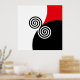 Affiche Cercles spiraux Abstraits en rouge et blanc noir