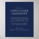 Cette affiche classique marine bleu argenté débranché de cérémonie est parfait pour un mariage simple moderne romantique et élégant. La palette de couleurs bleu marine foncé et la typographie vintage minimale lui confèrent une touche formelle chic et classe. Le design est flexible, parfait pour une soirée contemporaine basique, printemps, automne, été ou mariage d'hiver. Gardez-le tel quel, ou choisissez de le personnaliser avec des illustrations ou des graphiques de votre choix.