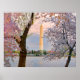 Le monument de Washington se dresse au milieu des cerisiers en fleurs. Une étendue d'eau tranquille reflète les couleurs vives de la saison.
