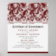 Affiche Certificat de Mariage de dentelle de cérémonie d'e