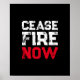 Affiche Cessez le feu Maintenant blanc rouge noir grunge t