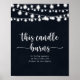 Cette enseigne à lumignons rustiques avec bougie est parfaite pour un mariage simple. Le design présente de belles guirlandes lumineuses peintes à la main sur un fond bleu foncé.