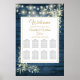 Cet élégant tableau de sièges feuille d'eucalyptus vert présente de jolies lampes à cordes et de délicats feuilles d'aquarelle avec le plan de séjour de vos invités encadré par une bordure dorée sur un arrière - plan en bois rustique bleu. Conçu par Thisisnotme©