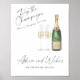 Aquarelle bouteille de champagne élégante avec deux verres de champagne et texte "Pop le champagne. Elle change de nom."