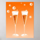 Illustration de deux verres de champagne côte à côte avec des bulles de style rétro flottant autour des verres. Prêt à trinquer pour une occasion spéciale comme un mariage ou un anniversaire. Image disponible sur divers cadeaux et produits.