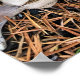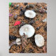 Champignons blancs entourés de pins, aiguilles et feuilles de couleur automne. Photo prise en novembre 2017, dans mon quartier de Wilsonville, Oregon.