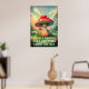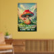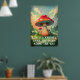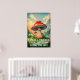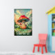 Illustration fantaisiste et rêveuse d'un champignon fantastique dans un paysage fascinant et onirique. Le champignon est plein de vie et surdimensionné, avec un style vintage et un aspect ludique, presque caricatural. L'environnement environnant est un mélange enchanteur de verdure luxuriante, de nuages tourbillonnants et d'un ciel aux couleurs pastel, qui dégage une atmosphère nostalgique et intemporelle.