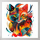 Un chat illustré dans des formes géométriques et des couleurs vibrantes qui apportent une énergie joyeuse. Cette pièce artistique est parfaite pour les amateurs de chats et de design moderne. 🐱🌟