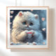 Affiche Chat blanc mignon tenant coeur art personnalisé