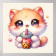 Affiche Chat Boire Boba Cute Bubble Thé
