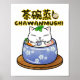 Chat blanc mignon et gras mangeant du chawanmushi (茶 碗 し) dans un bol géant de chawanmushi, un garde d'oeuf à la vapeur de style japonais. Convient aux amoureux de les chats et aux amateurs de cuisine japonaise.