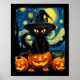 Affiche Chat de sorcière Starry Nuit Van Gogh Retro Hallow