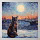 Affiche Chat impressionniste surplombant l'eau en hiver